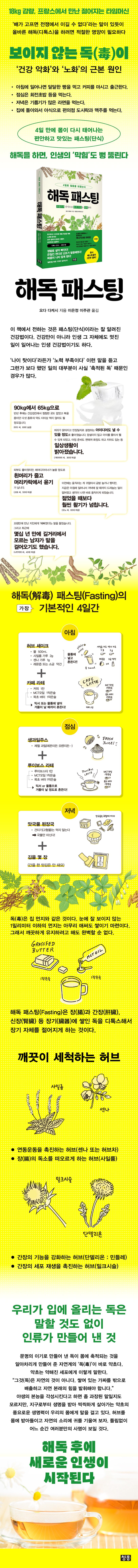 노화의 원인인 체내의 독(毒)을 패스팅(단식)으로 배출하는 것이다. 최신 연구에서 패스팅은 ‘젊음을 되찾는 효과가 있다’라고 보고하고 있다. 그러나 이론은 알아도 실행이 안 된다. 한다고 해도 효과가 느껴지지 않는다. 이유는 장기(臟器)에 노화 물질이 끈질기게 붙어서 끝까지 남아 있기 때문이다. 이 책에서는 허브(약초)의 힘을 빌려 패스팅을 하고 노화의 원인을 뿌리째 제거하는 아주 간단한 방법을 소개한다. ‘장(腸)’, ‘간장(肝臟)’, ‘신장(腎臟)’의 순으로 정화하면 ‘무겁고 나른하던 그 느낌이 뭐였지?’라는 생각이 들 정도로 몸이 가벼워진다. 그리고 왠지 모르게 인생이 잘 풀리기 시작하는 참신한 방법이다.