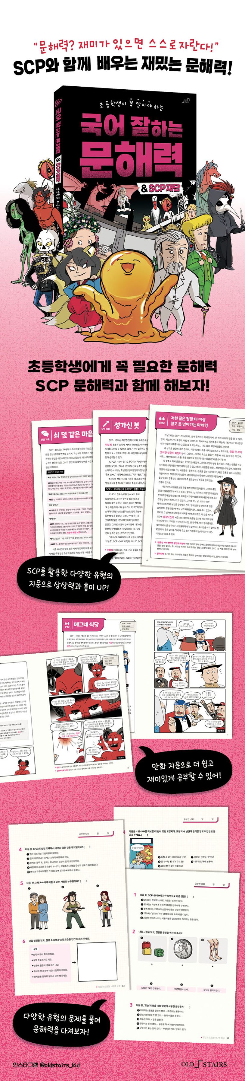 모든 교과목의 토대이자 학업 성취도를 좌우하는 문해력! 어른들에게도 낯설고 지루한 탈무드, 이솝우화, 고전문학 대신 어린이들의 상상력과 흥미를 자극할 수 있는 ‘SCP’ 세계관을 활용하여 이해력과 사고력은 물론 비판적 사고 능력까지 향상할 수 있도록 구성하였다.