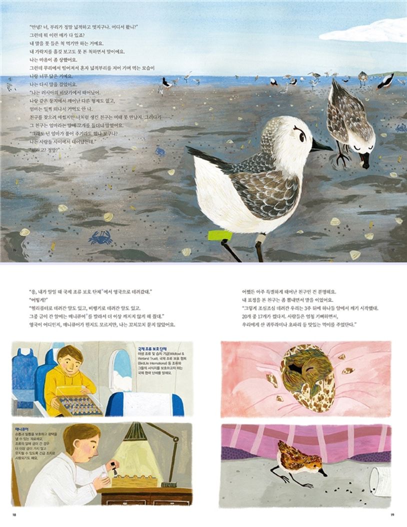 〈넓적부리도요의 특별한 여행〉은 이동성 물새를 지키기 위한 국제적 노력을 어린이 눈높이에 맞춰 이해하기 쉽게 풀어쓴 동화로 국가 간 보전 협력의 필요성을 일깨우는 계기를 마련하고자 기획되었다.