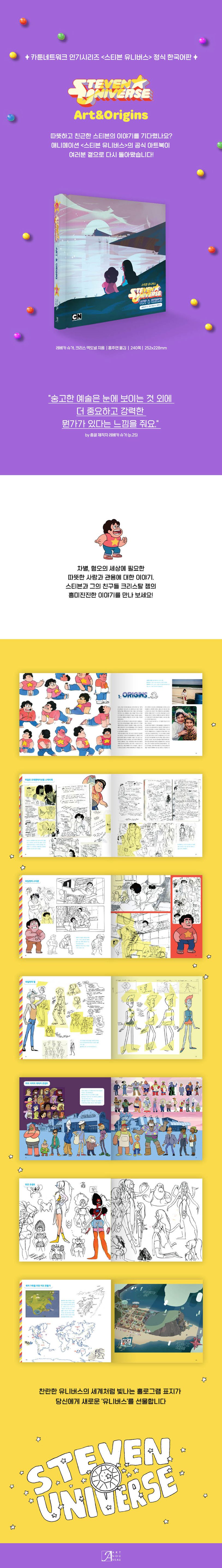 카툰네트워크 애니메이션 〈스티븐 유니버스〉는 차별과 편견, 고정관념을 깨트린 캐릭터들과 고리타분한 문법을 과감히 깬 에피소드들로 두터운 팬층을 형성하며 평단의 높은 평가를 받은 작품이다. 《스티븐 유니버스 아트북》은 〈스티븐 유니버스〉의 탄생 비화부터 제작 과정, 제작자들의 가치관 등을 총망라한 책으로 2018년 한국어판으로 정식 출간되었다. 큰 인기를 얻었으나 절판되어 아쉬움이 컸던 차에, 많은 팬들의 복간에 대한 꾸준한 기대와 성원에 힘입어 이번에 아르누보에서 복간했다. 〈스티븐 유니버스〉만의 균형 잡힌 세계관, 배척하지 않고 모두가 성장해나가는 따뜻한 스토리라인의 비하인드는 물론 감각적인 비주얼과 아트워크의 탄생 과정이 궁금하다면 다시 돌아온 《스티븐 유니버스 아트북》을 주목해보자!