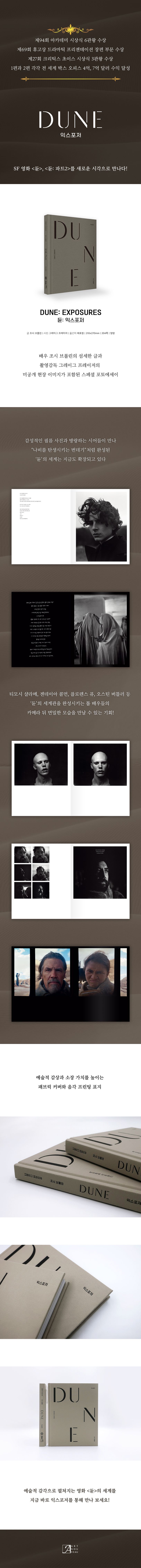 영화 〈듄〉과 〈듄: 파트2〉는 전 세계 40개국 이상의 언어로 번역되어 수백만 부가 넘게 판매된 프랭크 허버트의 SF 베스트셀러 소설 《듄》을 원작으로 한 작품이다. 할리우드 대표 배우 티모시 샬라메와 젠데이아 콜먼의 출연은 물론 레베카 퍼거슨, 오스카 아이작, 제이슨 모모아, 조시 브롤린 등이 출연하고 거장 드니 빌뇌브가 감독을 맡아 제작부터 화제를 모았다. 1편은 전 세계적으로 약 4억 달러의 수익을 기록하며 흥행하였고, 2편은 7억 달러의 매출을 거두며 SF 영화사에 새로운 기록을 세웠다. 도서 《듄: 익스포저》는 영화 〈듄〉과 〈듄: 파트2〉 촬영장의 뒷이야기를 담은 포토에세이다. 제94회 아카데미 촬영상에 빛나는 촬영 감독 그레이그 프레이저의 사진을 통해 그만의 예술적 감성은 물론, 영화에선 볼 수 없었던 배우들의 친근한 모습, 거대한 스케일의 촬영 현장의 이모저모를 확인할 수 있다. 또한 《듄: 익스포저》가 더욱 특별한 점은 출연 배우인 조시 브롤린의 에세이 글이 함께 수록되었다는 점이다. 조시 브롤린의 예리한 어휘들과 감정이 함축된 문장들은 그레이그 프레이저의 감각적인 사진과도 어우러져 하나의 작품과 같은 에세이를 완성해 냈다. 여기에 원서의 질감을 살린 감성적인 패브릭 커버와 감도 높은 인쇄 사진까지 만나볼 수 있는 도서다. ‘듄’의 팬이라면, 방대한 세계관 속에서 살아 숨 쉬는 역동적인 현장이 담긴 《듄: 익스포저》를 놓치지 말길 바란다.