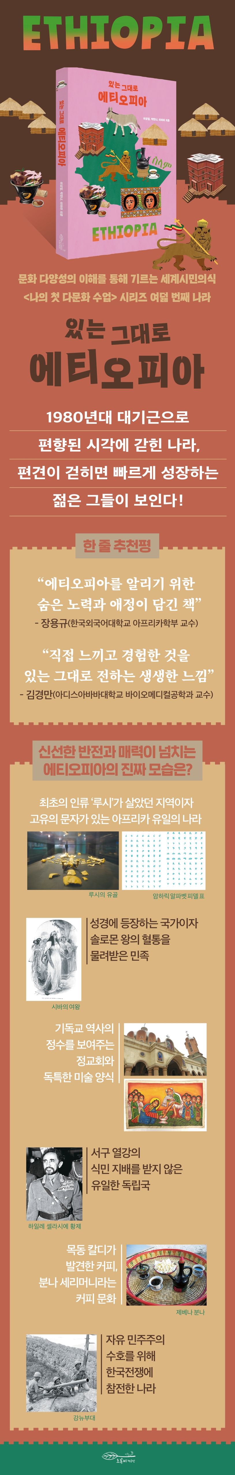 1980년대 대기근으로 에티오피아는 전 세계 빈곤의 대명사가 되었다. 그리하여 우리는 에티오피아 하면 가난과 절망이라는 단어가 먼저 떠오른다. 그러나 이는 편견에 지나지 않는다. 에티오피아는 찬란한 역사와 문화적 풍요로움으로 아프리카인들에게 자긍심의 상징이자 정신적 지주 역할을 하고 있다. 또한 최근 10년간 약 10%대의 경제 성장률을 기록하면서 새로운 기회의 땅으로 주목받고 있다.