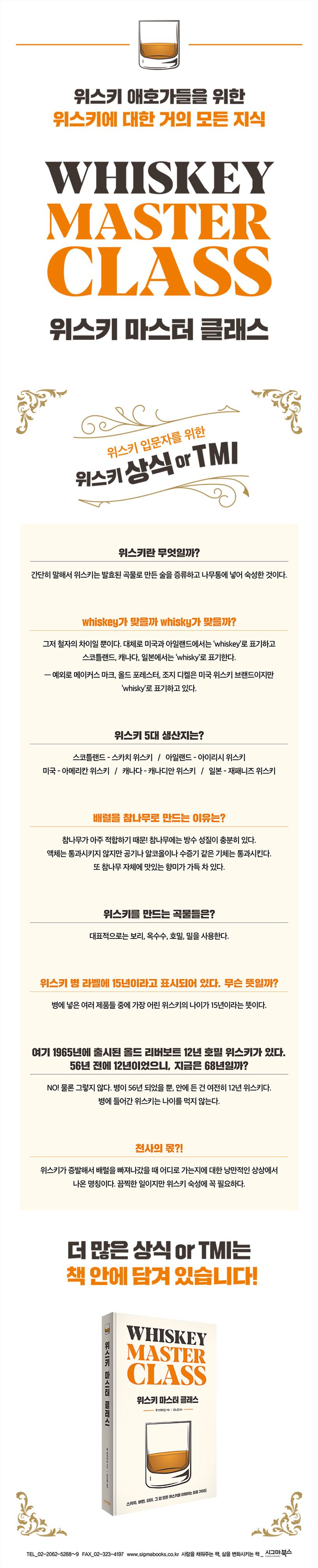 저자가 세계 곳곳을 여행하며 배운 버번, 스카치 위스키, 호밀 위스키 등을 아우르는 지식을 모두 이 책에 담았다. 국가별 위스키 스타일을 결정짓는 공통적 특징과 규정부터 업계 전문가가 아니면 전혀 몰랐을 재료와 제조과정의 미묘한 차이에 이르기까지, 위스키에 관한 모든 것을 알려주는 완벽한 탐험서다. 책 곳곳에 수많은 전문가 인터뷰, 비하인드 사진, 시음 메모가 가득 담겨 있어, 취향에 따라 관심이 가는 위스키를 찾을 수 있을 것이다.