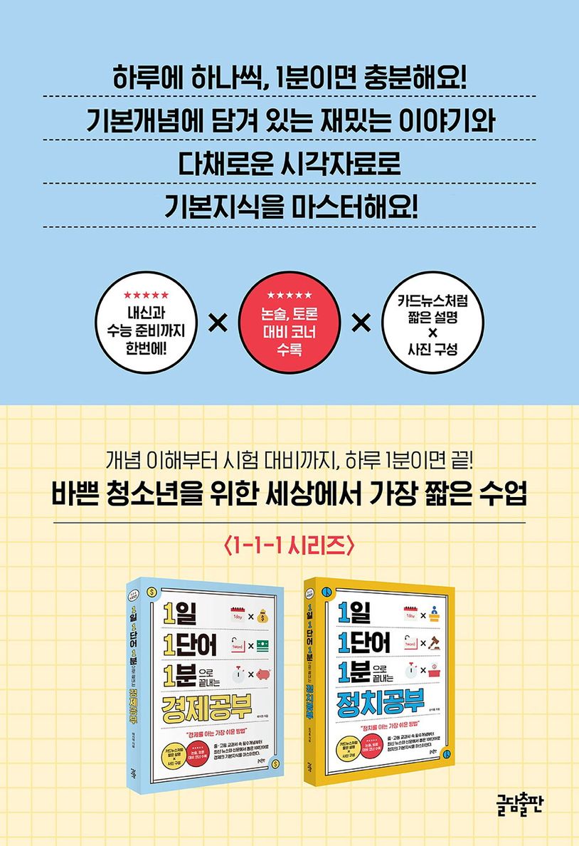 1일 1단어 1분으로 끝내는 경제공부 + 정치공부 세트 (경제·정치를 공부하는 가장 쉬운 방법! <1·1·1 시리즈> | 전 2권)