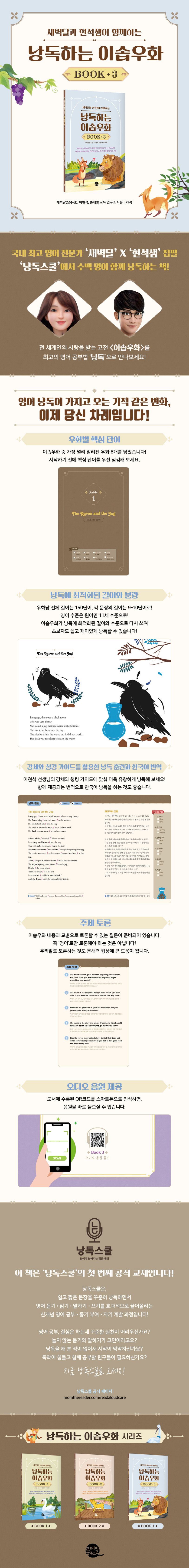 엄마표 영어 전문가 ‘새벽달’ 남수진 선생님과 EBS 라디오 진행자 이현석 선생님이 합심하여 만든 이 책은, ‘이솝우화’를 ‘낭독’에 활용할 수 있도록 완벽하게 재구성한 책입니다!
