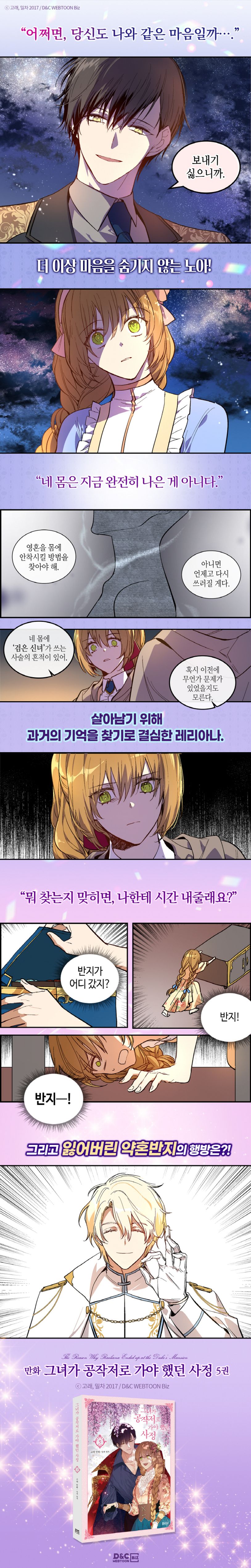 “과거의 레리아나 맥밀런이 아닌, 내가… 돌아갈 곳.” 지금까지는 빙의하기 전 레리아나가 무엇을 했는지 궁금하지 않았다. 궁금해할 필요가 없었으니까. 하지만 영혼이 몸에 안착되지 않은 상태가 계속된다면 언제든지 다시 쓰러질 수 있다는 히이카의 말에, 레리아나는 과거 그녀에게 무슨 일이 있었는지 추적하기로 결심한다. 한편 노아가 준 약혼반지가 없어진 사실을 뒤늦게 깨달은 레리아나는 반지를 찾기 위해 왕성으로 향하고, 아주 뜻밖의 장소에서 약혼반지를 발견하는데…?!