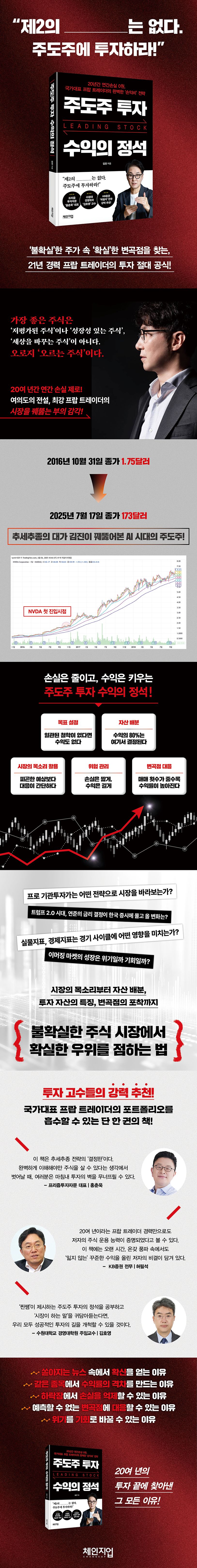 시장을 바라보는 관점과 투자해야 할 대상, 그리고 자신의 투자 원칙에 일관성이 있어야 건강한 수익을 낼 수 있다. 여기서 어느 하나라도 소홀히 한다면 운에 맡긴 단발성 투자에 그칠 뿐이다. 저자가 준비한 주도주의 개념부터 자산 배분 및 위기 관리 방법, 각종 지표를 통한 시장의 목소리를 듣는 방법, 20여 년간 손해를 입지 않은 저자만의 포트폴리오 원칙과 논리까지 따라온다면 누구나 마법처럼 세상이 원하는 것을 선점할 수 있을 것이다.