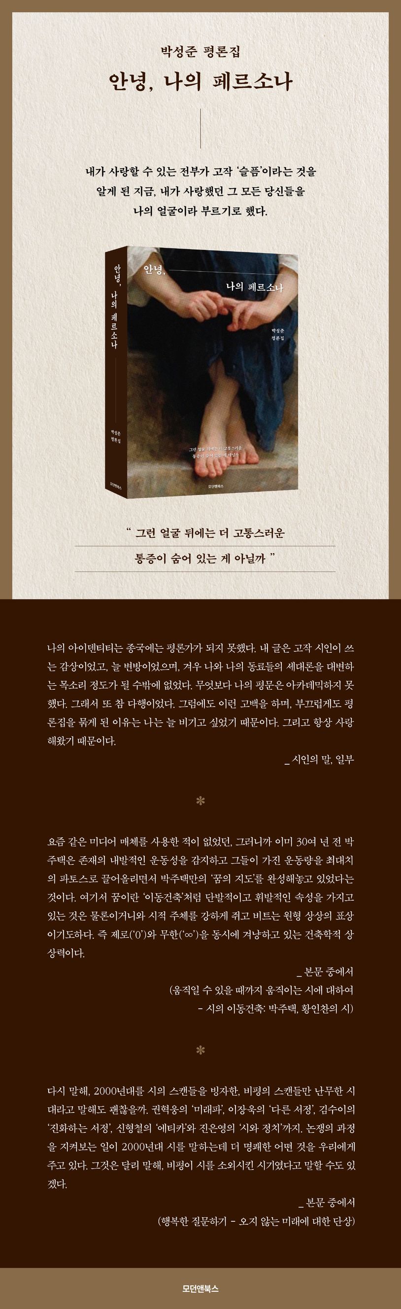 시인이자 문학평론가, '앙팡 테리블' 박성준의 첫 평론집이 모던앤북스에서 출간되었다. 2009년 문학과사회 신인문학상에 시, 2013년 경향신문 신춘문예에 평론이 당선되면서 시인이자 평론가로 활동을 시작한지 15년 만의 첫 평론집이다.