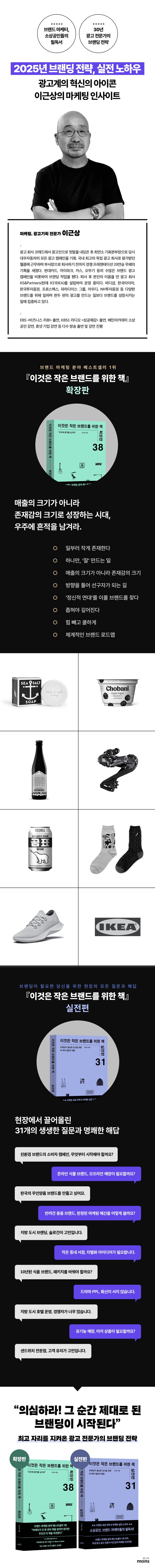 30년 넘게 광고 분야에서 일해온 저자 이근상은 이번 책 『이것은 작은 브랜드를 위한 책 실전편』을 통해 “마케팅이 시장을 흔들던 시대는 끝난다”고 선언한다. 브랜드의 본질보다 ‘포장하는 방법’에 치우치던 질풍노도의 50년을 지나 다시 본질의 시대로 돌아왔다는 것이다.
