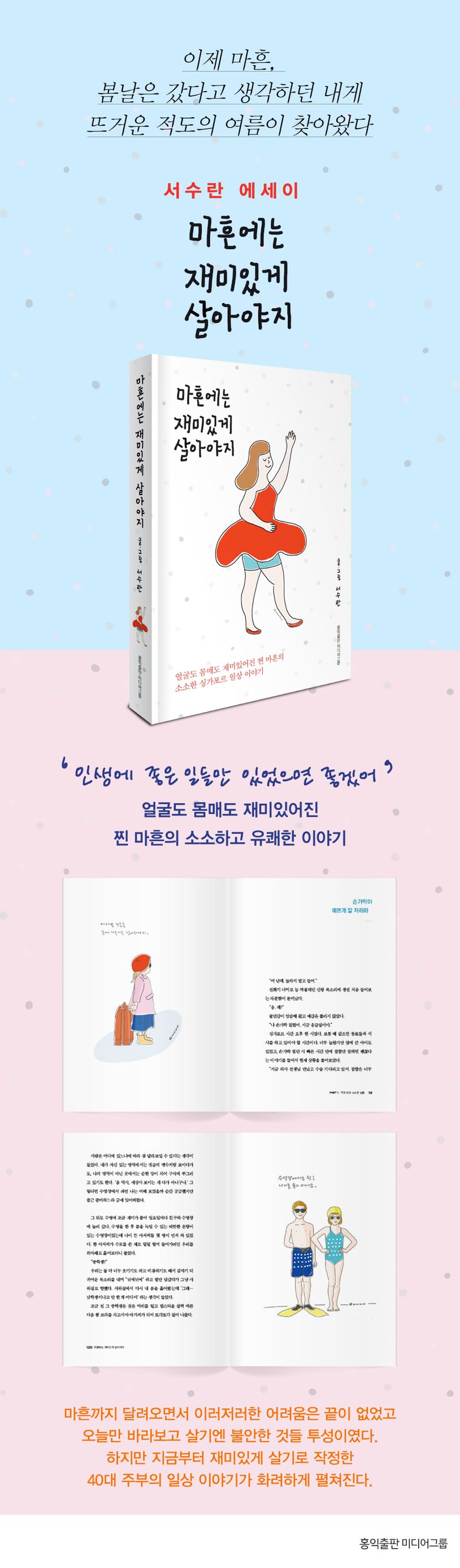 당신의 마흔은 어떤 모습인가. 이 책의 저자가 가장 먼저 던지는 질문이다. 청춘이 지나간 것 같아 슬플 수도 있고, 안정된 생활에 만족하고 있을 수도 있다. 사계절이 여름인 나라, 싱가포르에서 40대를 맞이한 저자는 서툴지만 어른이 되어 가고 있다.