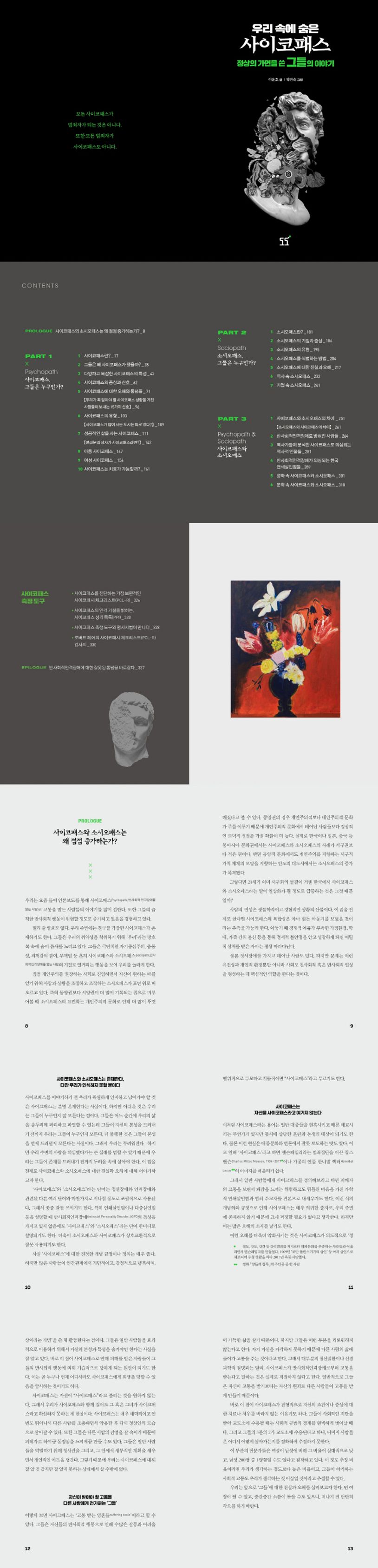 ‘사이코패스’와 ‘소시오패스’라는 학술 용어가 대중 용어로 변모하고, 전문가들의 인터뷰가 쏟아지면서 온 국민이 범죄 문제의 준전문가가 되면서 이 두 단어는 우리들 속에 깊이 자리잡았다. 하지만 대중문화가 전하는 사이코패스와 소시오패스는 우리를 매료시키는 무언가가 있으면서도 잘못된 편견을 심는 데 한몫하고 있다. 과연 우리는 사이코패스와 소시오패스를 올바르게 정의할 수 있을까? 일반 사람들에게 사이코패스와 소시오패스를 정의하라고 하면 그들을 범죄자로 치부하면서 피해자의 고통을 보면서 쾌감을 느끼는 위험하고도 뒤틀린 마음을 가진 사람으로 인식한다. 그리고 그 표본으로 한니발 렉터 같은 연쇄살인범을 내세운다. 연쇄살인범은 모두 사이코패스나 소시오패스일까? 이런 식의 개념화와 규정은 사이코패스와 소시오패스를 이해하는 데 큰 걸림돌이 되곤 한다. 물론 사이코패스와 소시오패스를 매우 희귀한 종자로 여기면서, 우리들과는 다른 사람으로 취급하면 그들을 받아들이는 것에 다소 편할지도 모른다. 하지만 그것은 잘못된 통념이다. 사실 사이코패스와 소시오패스는 임상적 진단이 아니라 반사회적인격장애의 진단 범주에 속한다. 또한 정신질환과는 결이 다르다. 많은 사람들이 사이코패스나 소시오패스를 ‘악마’라고 치부하는데 그것도 아니다. 우리는 지금부터라도 그들에 대한 진실과 오해를 알아둘 필요가 있다. 그래야 반사회적 사이코패스와 소시오패스를 식별할 수 있다. 『우리 속에 숨은 사이코패스』는 범죄학자 이윤호 교수가 사이코패스와 소시오패스의 본질과 그들과 함께 하는 우리들의 현실을 제대로 파악하고, 그들에 대한 잘못된 통념이나 기준으로 사회가 어지럽지 않았으면 하는 절박한 심정으로 쓴 책이다. 더 이상 사이코패스와 소시오패스는 나와는 상관없는 사람들이 아니라 나하고도 상관있는 사람들일 수 있다는 점을 염두에 둬야 한다. 또한 우리조차도 그러한 성향이 있을 수도 있다는 것을 인식해야 한다.