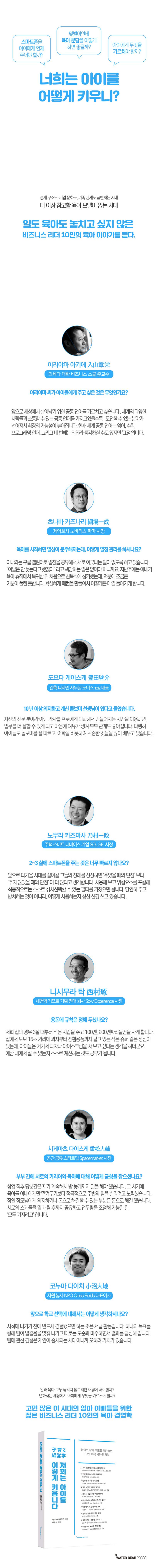 오늘날의 엄마 아빠들은 고민이 많다. 맞벌이를 하면서 어떻게 아이를 키워야 할지, 커리어를 쌓으면서 아이에게도 최선을 다할 방법이 있을지, 아이에게는 무엇을 가르쳐야 할지 등. 게다가 세상은 과거와는 너무 달라졌고, 지금도 빠르게 변하고 있어서 조언을 구하기도 힘들다. 아이를 신체적으로, 정신적으로 건강하게 키울 수 있는 방법에 대한 정보는 접하기 어렵지 않게 되었지만, 나와 아이의 미래를 어떻게 만들어 나가면 좋을지에 대한 고민은 어디서도 해결하기 힘들다.