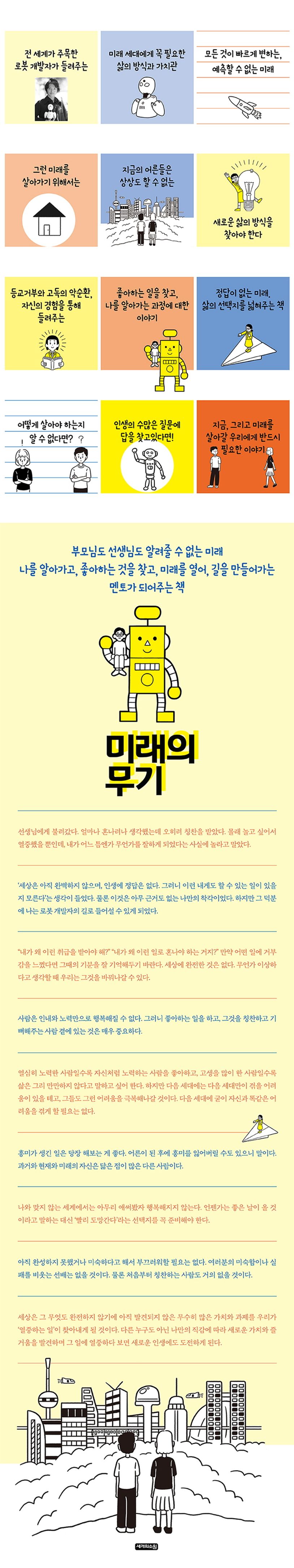내일을 살아갈 미래 세대에게 꼭 필요한 삶의 방식과 가치관, 그리고 현실적이고 다정한 조언. 부모와 선생님이 먼저 읽어야 하고, 아직 삶의 주제를 찾지 못한 청춘이라면 반드시 읽어야 하는 중요한 이야기!