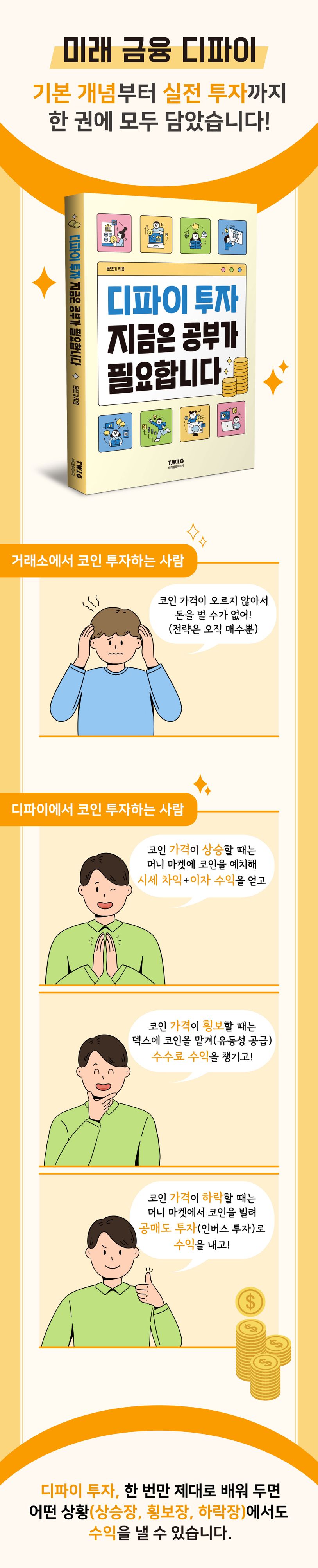 『디파이 투자, 지금은 공부가 필요합니다』 책에는 디파이의 기본 개념부터 실전 투자를 위한 필수 지식이 모두 담겨 있습니다. 새로운 투자 기회를 찾고 계신 분들께 이 책이 큰 도움이 될 것이라 확신합니다.
