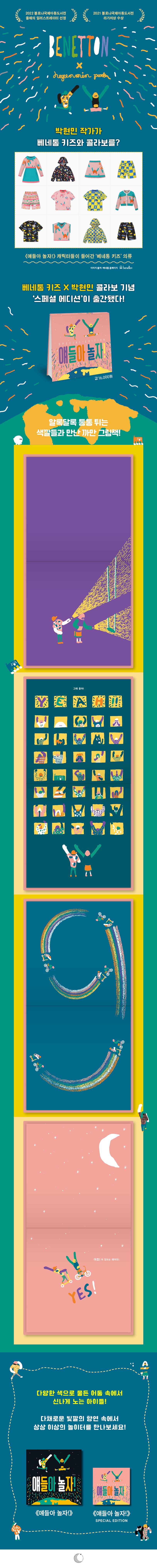이번 공동 작업을 축하하는 의미로, 어둠 속에서 신나게 뛰어노는 아이들을 담아낸 《얘들아 놀자!》의 특별판이 출간됐다. 표지와 본문은 물론 책 옆면까지 도색 작업을 통해 온통 까맣게 만들었던 《얘들아 놀자!》가 알록달록한 색깔 옷을 입은 것이다. 작고 다채롭게 탈바꿈한 특별판을 펼쳐 보면서, 기존 도서와 어떤 점에서 다르고 같은지를 비교해 보고 경쾌한 즐거움도 만끽할 수 있다.