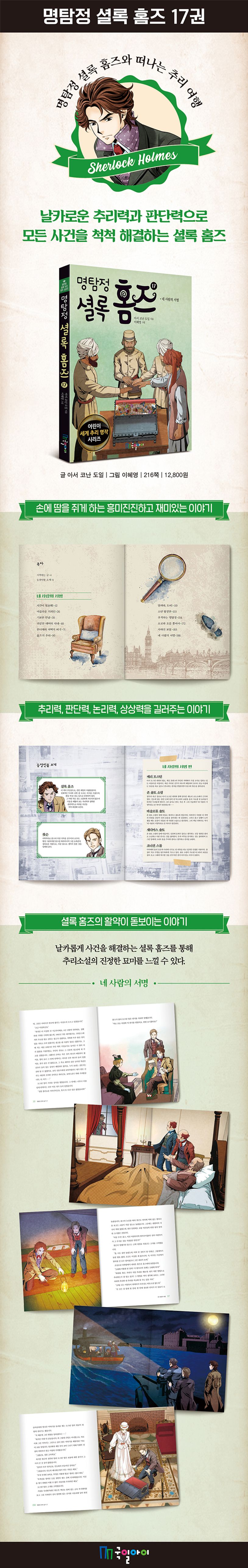 《명탐정 셜록 홈즈》 17권은 철저한 과학적 추리를 통해 사건을 해결해 나가는 장편 ‘네 사람의 서명’으로 기존의 단편과 다른 새로운 재미를 선사할 것이다.