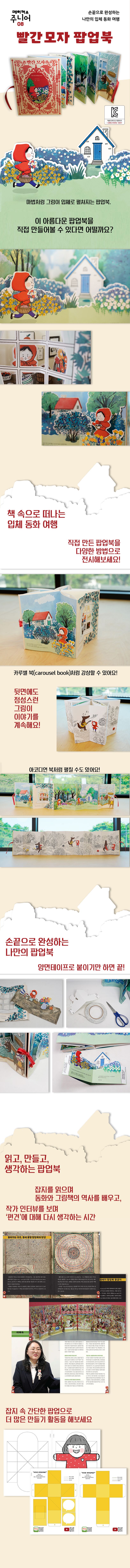 《메이커스 주니어 08 빨간 모자 팝업북》은 그림책 작가이자 팝업북 아티스트인 이예숙 작가가 직접 설계한 DIY 키트입니다. 내 손으로 눈길을 사로잡는 아름다운 그림과 정교한 입체 구조의 팝업북을 완성할 수 있습니다.