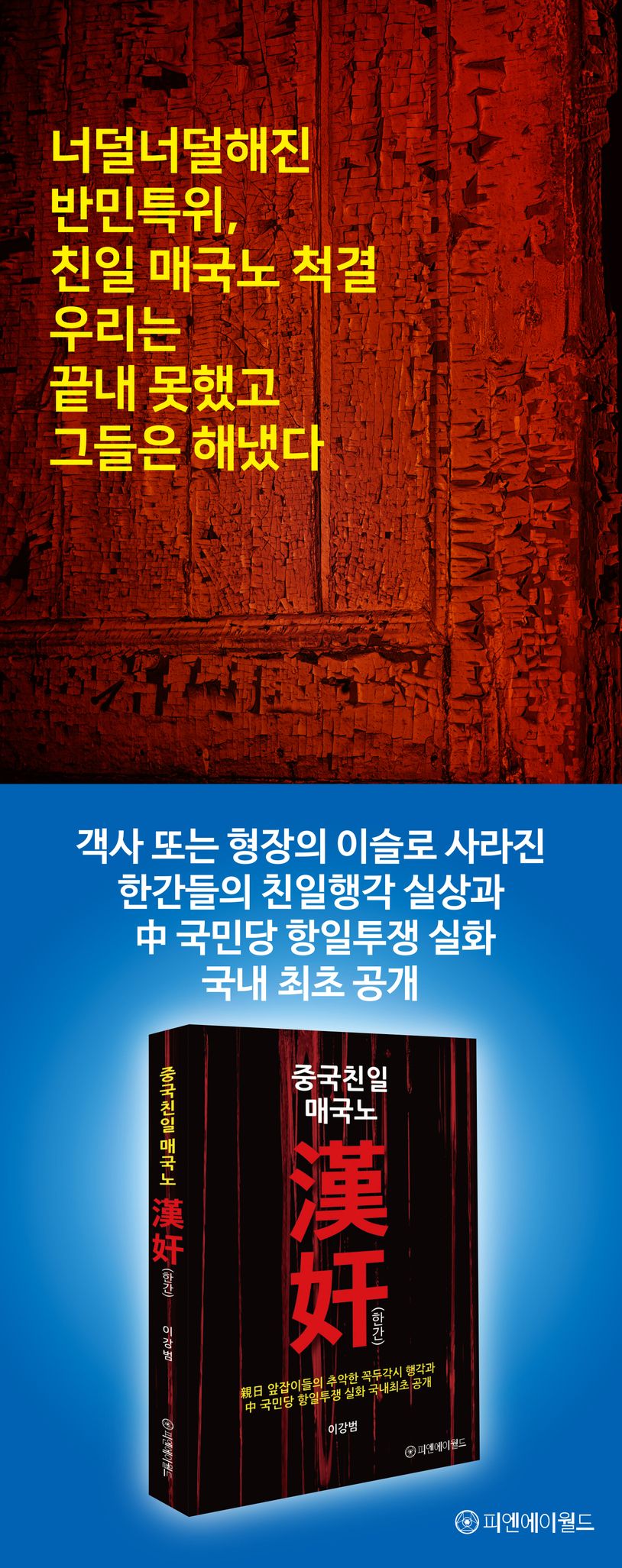 ‘친일청산’... 주권침탈에 앞장서 한민족의 얼을 누더기로 만든 민족반역자들. 우리는 왜 그들을 아직도 청산하지 못하고 있나? 그런데 우리의 35년 수난과 같은 식민지 시대, 횡행의 극을 달렸던 친일매국노 ‘한간(漢奸)’을, 중국은 종전(終戰)과 동시에 심판대를 세워 청산을 이뤄냈다.