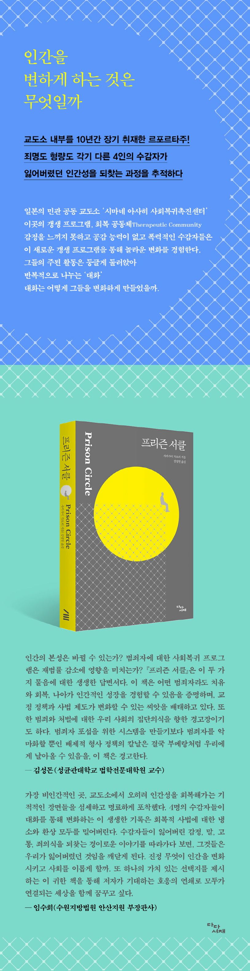 『프리즌 서클』은 일본 최초로 교도소 내부를 10년간 장기 취재한 다큐멘터리 감독이자 사회운동가 사카가미 가오리의 르포르타주다.