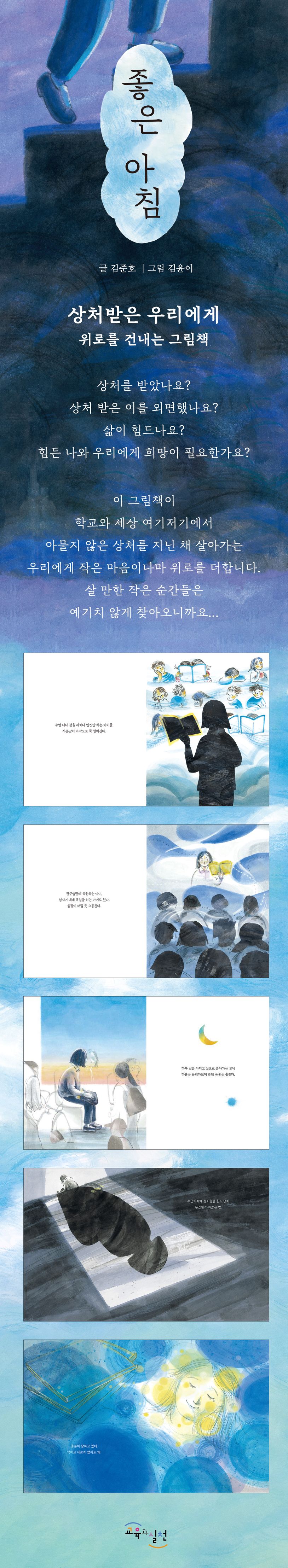 아이들은 선생님을 절망시키기도 하지만 한없이 기쁨을 주기도 합니다. 아니, 어쩌면 선생님은 아이들의 작은 사과의 말이나 감사 표현만으로 언제든 기쁠 준비가 되어 있는지도 모릅니다. 이 그림책이 교실에서 홀로 애쓰고 있는 교사들의 마음을 헤아리고 응원해 주는 책이 되면 좋겠습니다. 짙은 먹구름 뒤에 언제나 파란 하늘이 있다는 걸 기억하며, 어제보다 조금은 더 단단해진 마음으로 아이들에게 “좋은 아침!” 하고 인사할 수 있기를 바랍니다.