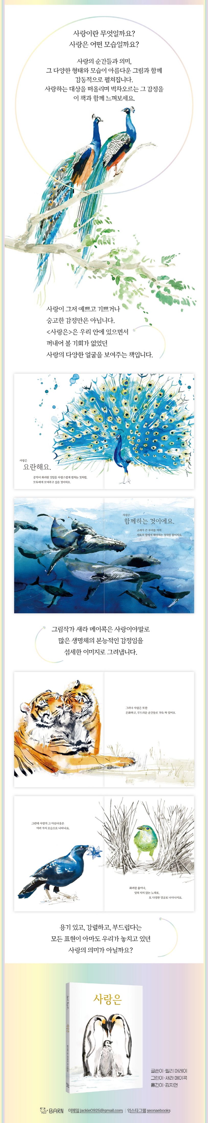 정답은 없습니다. 사랑이라고 말할 수 있는 다양한 순간과 장면이 있을 뿐입니다. 아름다운 그림을 통해 이미 알고 있지만, 자주 잊고 있던 소중한 감정을 일깨워주세요.