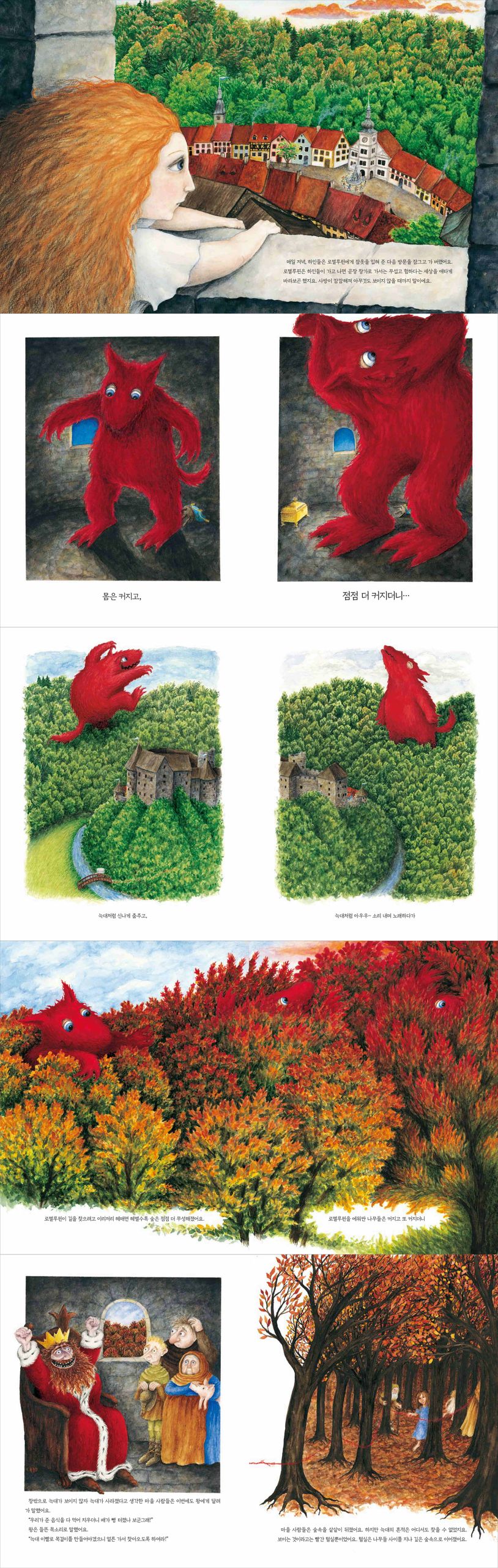 《빨간 늑대》의 주인공 로젤루핀은 하트 창살이 박힌 돌탑에 갇혀 사는 공주다. 여기까지만 보면 높은 탑에 갇혀 누군가 구해 주기만을 기다리는, 수동적이고 순종적인 옛이야기 속 공주들의 모습과 크게 다르지 않다. 하지만 《빨간 늑대》는 수많은 옛이야기 속 흔하고 뻔한 공주 이야기와는 다르다. 작가 마가렛 섀넌이 ‘지금, 여기, 우리’에 맞도록 새롭게 ‘뜨개질’한 ‘공주 이야기’이기 때문이다.