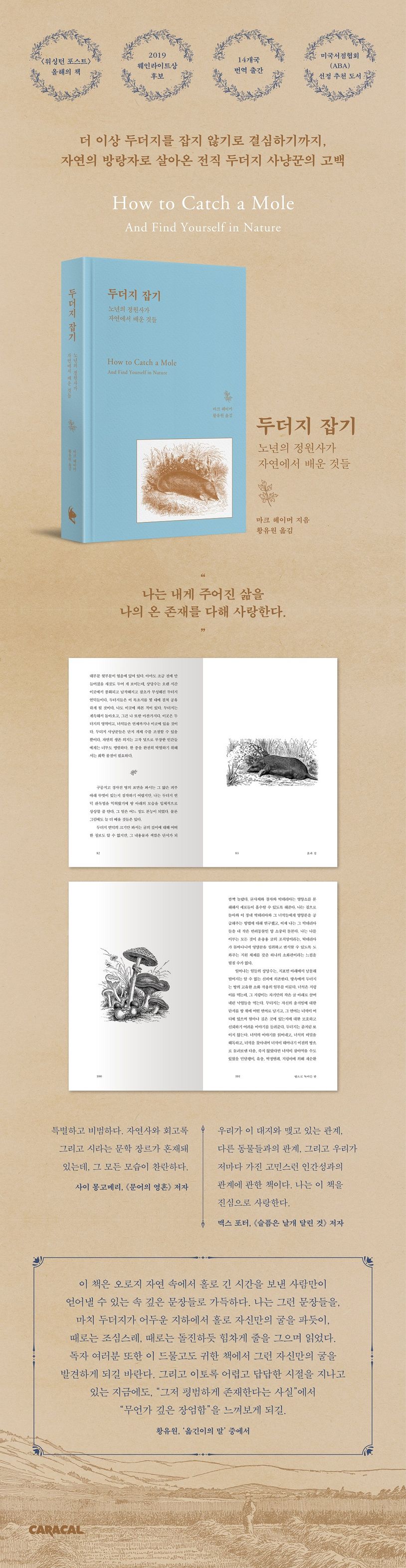 영국에는 두더지 사냥꾼이라는 직업이 있다. 땅을 헤집어 정원과 농작물에 피해를 주는 두더지를 잡아 생계를 유지하는 두더지 사냥꾼은, 영국에서 수백 년간 존재해온 전통적 직업이다. 시인이자 정원사인 마크 헤이머는 이 책에서 두더지의 생태와 두더지 사냥꾼으로서의 삶, 그리고 더 이상 두더지를 잡지 않기로 결심하기까지의 자전적 이야기를 단단하고도 세심한 독창적 문체로 전한다.