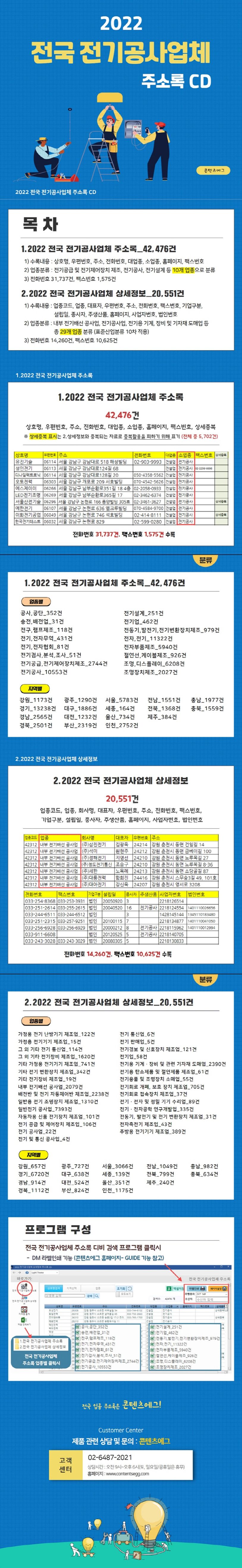 전국 전기공사업체 주소록(2022)(CD) (전기공급,전기제어장치제조, 전기공사업, 전기설계, 내부 전기배선 공사업, | 장비 및 기자재 도매업 약 6만2천건 수록, DM 라벨기능