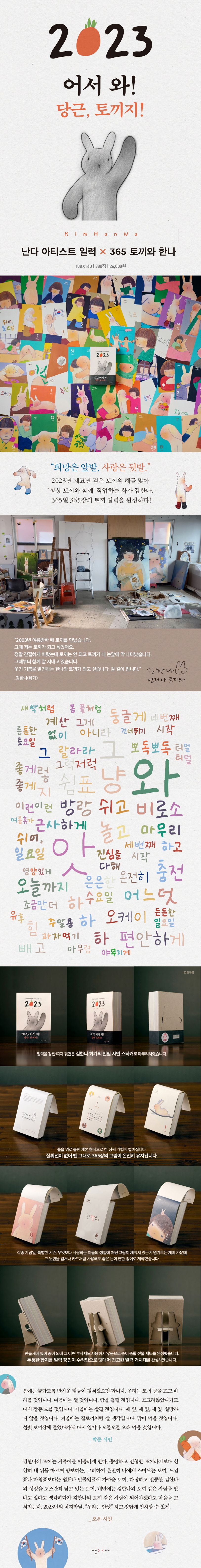 2023년 계묘년을 맞아 출판사 난다에서 아티스트 일력 프로젝트를 선보입니다. 그간 난다는 국내외 작가들의 글에 국내외 화가들의 그림을 읽을거리와 볼거리의 협업 속에 한 권의 책으로 맞춤하여 종종 여러분들에게 선보여왔지요. “깊이 있는 이야기의 감각적 무장”이라는 캐치프레이즈를 신봉한 연유도 있었겠지만요, 그간 난다의 안팎은 글만큼 그림을 좋아하시는 분들이 에워싸주신 것도 맞는 듯해요. 그렇지요. 맞지요. 본다는 일의 동작을 살폈을 때 글과 그림의 정신적인 것에 있어서도 그저 좋음이란 휨의 태도가 우선하겠지요. 하여 난다가 책의 표지나 본문 속 그림을 통해 만나온 작가는 꽤 많지요. 박서보, 변웅필, 이현우, 채지민, 김찬송, 김한나, 민병헌, 이우성, 김선두, 이목을, 신소영, 노석미, 이정웅, 김수강, 송은영, 박성수, 조성흠, 이연미, 이인, 김성호, 김란, 하이경, 황선태, 윤종석, 이효연, 박현웅, 임옥상, 정정엽, 조셉 로루소, 기드온 루빈, 팀 아이텔, 앤드루 와이어스, 에바 알머슨, 솔 스타인버그, 빌헬름 사스날, 라울 뒤피, 마크 로스코, 오딜롱 르동, 펠릭스 발로통 등등 일일이 떠올려 열거하기에도 다소 가물가물함이 있는데요, 하여 4년 전부터 매년 한 아티스트와의 콜라보로 아티스트 다이어리를 비매품으로 제작해 여러분의 일상 속 매일같이 그림이 스미기를 바라는 마음에서 난다의 책을 사랑해주시는 독자분들과 나눠오기도 했지요. (난다 아티스트 다이어리 프로젝트는 지난 2020년 노석미 작가를 필두로 2021년 홍인숙 작가, 2022년 김한나 작가, 2023년에는 김찬송 작가) 그리고 2023년을 직전에 둔 2022년 12월에 또 하나의 프로젝트로 난다 아티스트 일력을 진행하게 되었답니다.