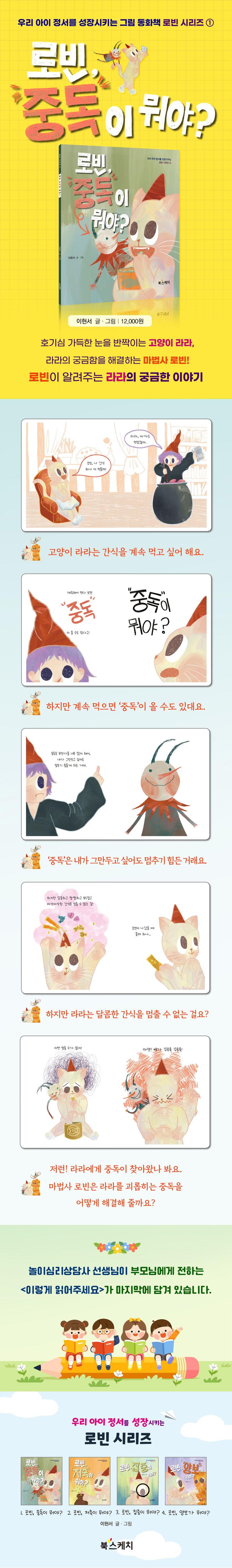 로빈 시리즈는 아이들이 자신의 행동을 스스로 조절할 수 있는 마음 근육을 키울 수 있도록 도와줍니다. 호기심 가득한 눈을 반짝이며 “좋아하는 걸 많이 하는 건 좋은 거잖아!”라고 말하는 고양이 라라에게, 마법사 친구 로빈은 ‘중독’을 어떻게 이야기해 줄까요?