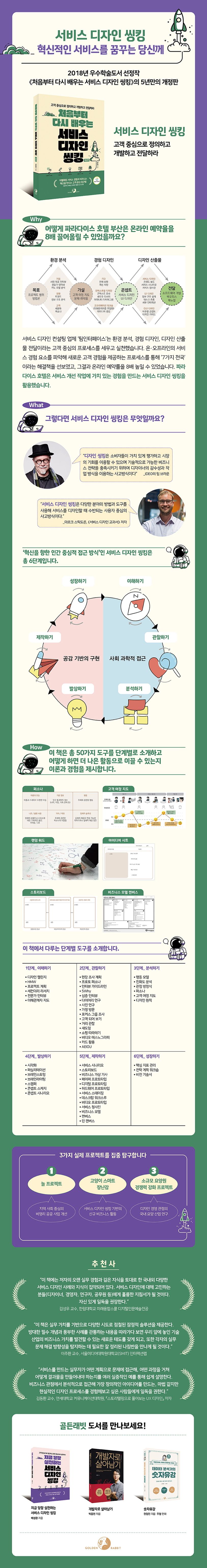 혁신적인 서비스는 하루 아침에 만들어지지 않는다. 고객 중심으로 관찰, 정의, 개발, 전달할 때 비로소 만들어진다. 서비스 디자인 씽킹은 현존 최고의 고객 중심 방법론이다. 이 책은 서비스 디자인 씽킹 프로세스에 대한 변화의 흐름을 파악하고, 실제로 현장에서 어떻게 다루는지 실행 단계를 상세히 살펴본다. 특히 이 책을 위한 별도의 프로젝트를 진행해 다양한 환경과 현장에서 적용 가능한 내용을 제시한다. 차별화된 비즈니스 경험과 서비스 혁신을 원하는 독자가 고객 중 심으로 접근할 때 착실한 길잡이가 되어줄 것이다.