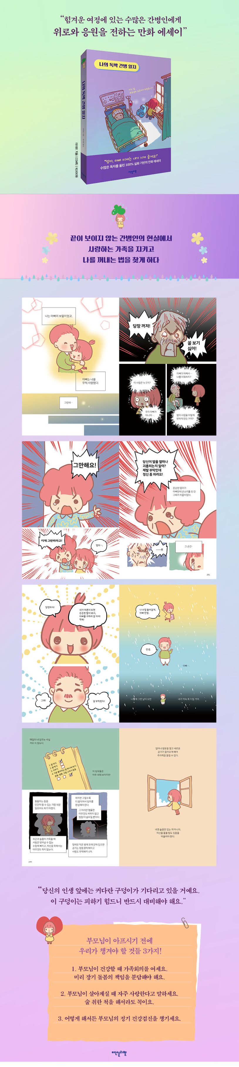 “간병인의 삶을 솔직하고 담담하게 풀어낸 만화 에세이”