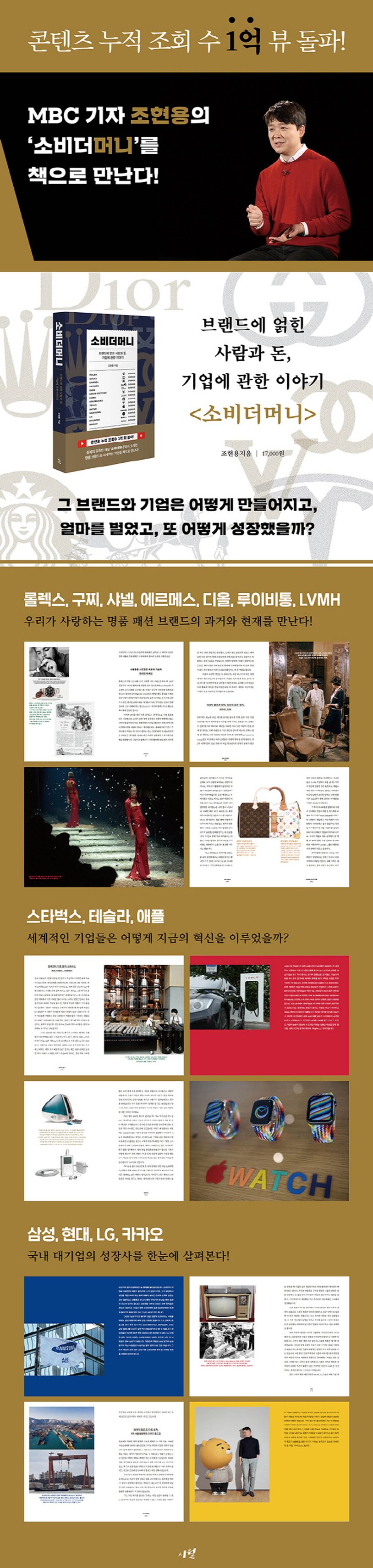 도서 〈소비더머니〉는 그간 유튜브 채널을 통해 소개된 100여 개의 브랜드와 기업들 중 구독자들의 특히 많은 사랑을 받았던 14개의 명품 브랜드와 기업을 모았다. 각 기업들에 대한 수많은 자료조사에도 불구하고 유튜브 영상이라는 매체의 특성상 핵심적인 내용만 압축적으로 보여줄 수밖에 없다는 한계가 있었다. 이번 〈소비더머니〉 도서 버전에서는 직접 모든 내용을 집필한 조현용 기자 특유의 리드미컬한 형식을 살리는 동시에 영상을 통해 소개하지 못했던 다양한 내용들까지 추가하면서 ‘읽는 맛’은 물론 깊이까지 더했다.