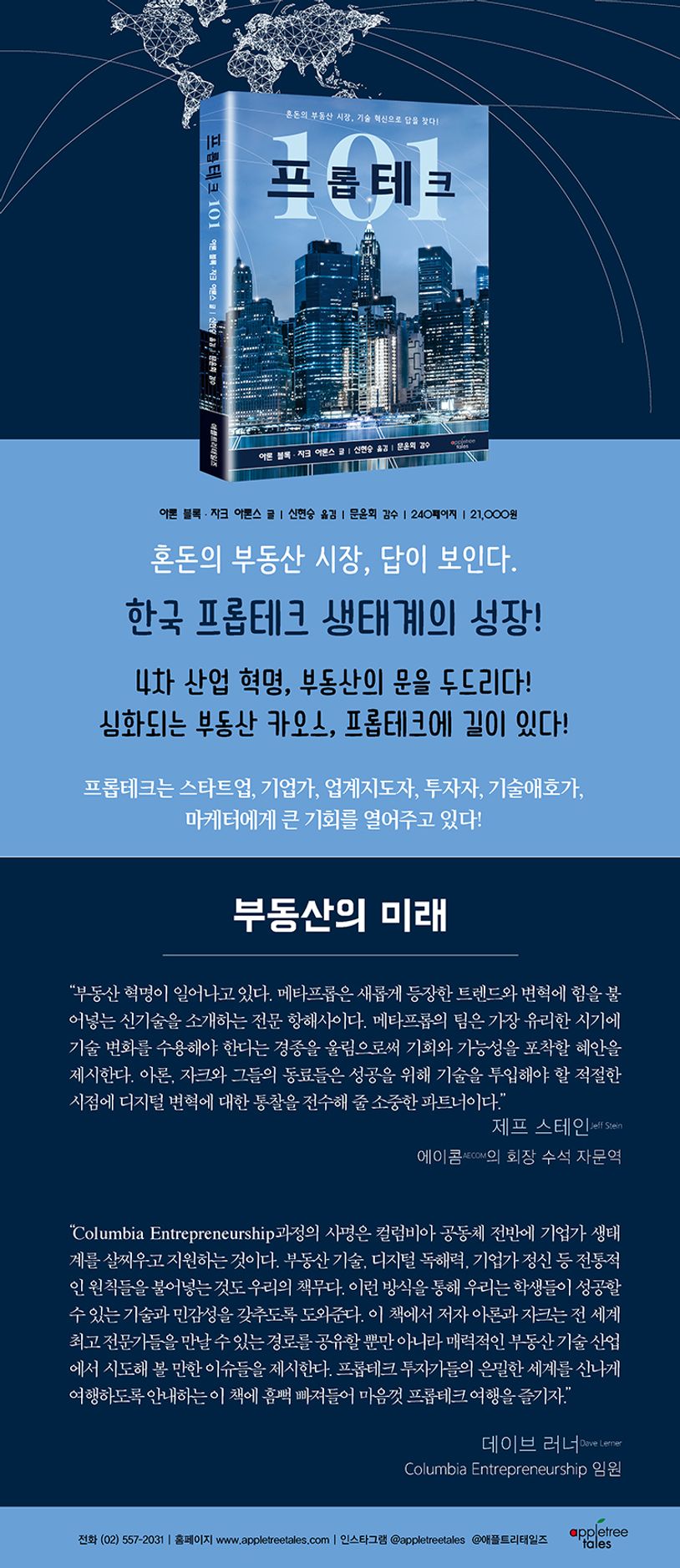 인공지능 시리·빅스비를 이용하지 않는 스마트폰 유저는 드물 것이며, 드론을 통한 촬영, 배송, 전투 기술이 뉴스를 장식하고 있고, 수많은 자율 주행 차가 도로를 활보하고, 사물인터넷으로 언제 어디서든 집과 가전제품을 조절할 수 있다. 그런데 이러한‘제4의 물결’조차 침범하기 힘든 보수적인 영역이 아직도 존재하고 있으니, 바로‘부동산’산업이다.