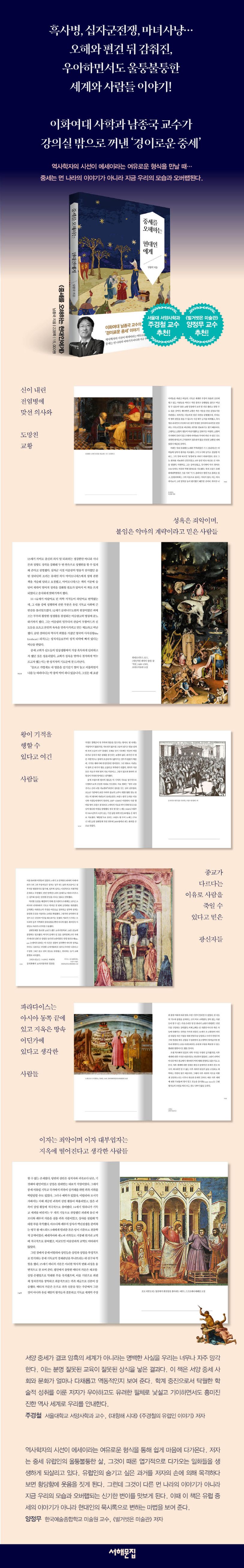 ‘중세 유럽’에 관한 이야기와 책, 각종 콘텐츠는 차고 넘친다. 하지만 대부분은 그때, 그곳이 현대와 비교해 얼마나 암울하고 어두웠는지를 보여 주는 데 그치고 만다. 코로나19 팬데믹 상황과 곧잘 비교되는 ‘흑사병’, 아직까지도 이어지고 있는 종교 간 불화의 씨앗이 된 ‘십자군전쟁’, 언론이나 인터넷 커뮤니티 등에서 일어나는 여론몰이를 일컫는 ‘마녀사냥’ 등으로 대표되는 중세는 과연 어떤 세계였을까.