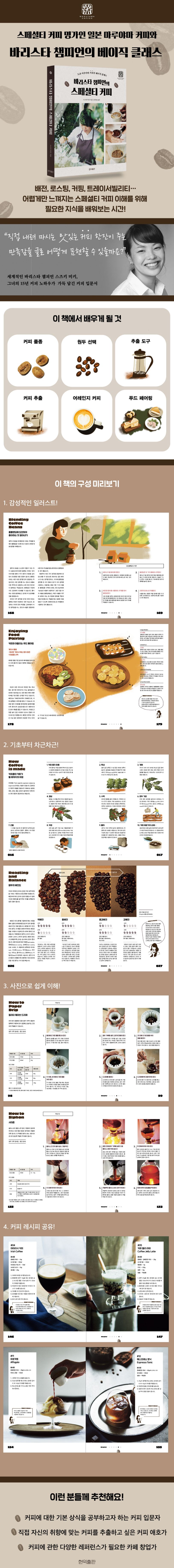 바쁜 일상 속, 커피는 우리에게 작지만 확실한 행복, 일명 ‘소확행’을 선사한다. 매일의 일상을 커피와 함께하면서도, 우리는 생각보다 커피에 대해 아는 것이 많이 없다. 싱글 오리진, 스페셜티 커피, 커핑, 배전, 트레이서빌리티 등의 용어들은 어디선가 들어본 듯하지만, 여전히 복잡하게 느껴진다. 『바리스타 챔피언의 스페셜티 커피』는 커피 애호가로 향하는 문턱을 서성이는 일반인들을 위한 맞춤형 입문서다. 산지에서부터 컵에 담긴 스페셜티 커피가 되기까지의 여정을 상세하게 담아낸 커피책으로, 커피의 기초를 확실하게 다지고자 하는 모든 이들에게 도움이 될 것이다.