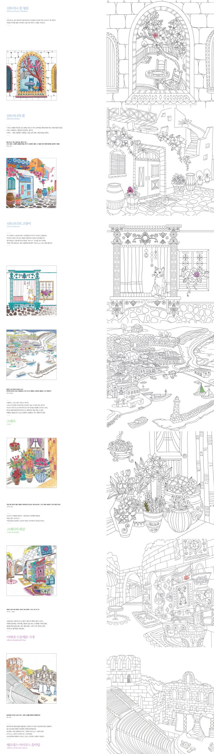 tvn 인기 시리즈 ‘꽃보다 할배’의 여행지로 선정되어 관심이 폭발적으로 증가하고 있는 그리스를 컬러링으로 구성한 책으로, 아테네의 고대유물, 산토리니의 그림같은 풍경, 크레타의 아름다운 카페, 미코노스의 슈퍼파라다이스 비치 등 유럽 최고의 경치와 낭만을 간직한, 그 이름만으로 설레는 곳들을 여행자의 발걸음을 따라 색칠할 수 있도록 구성했다. 그밖에 그리스를 대표하는 벽화와 문양, 건물, 신화속 인물 등 그리스의 다양한 진면모를 빠짐없이 경험할 수 있다.