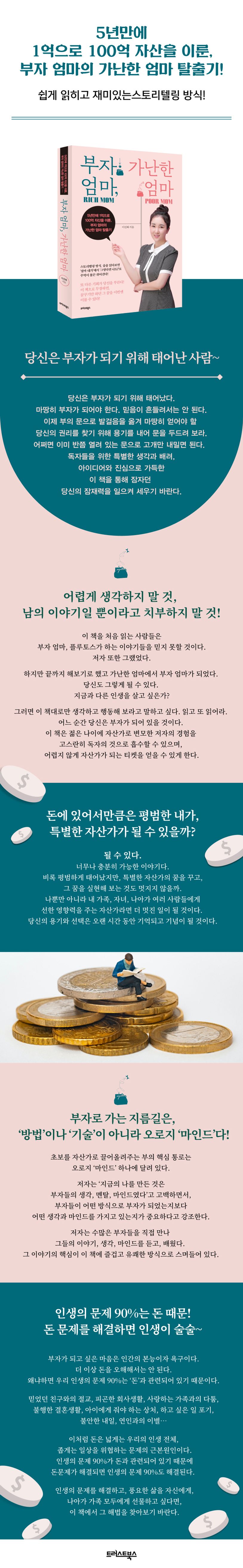 실제 단기간에 가난한 엄마에서 부자 엄마가 된 저자 자신의 이야기를 토대로, 독자들이 재미있게 읽고 쉽게 실천할 수 있도록 스토리텔링 방식을 채용하였다.