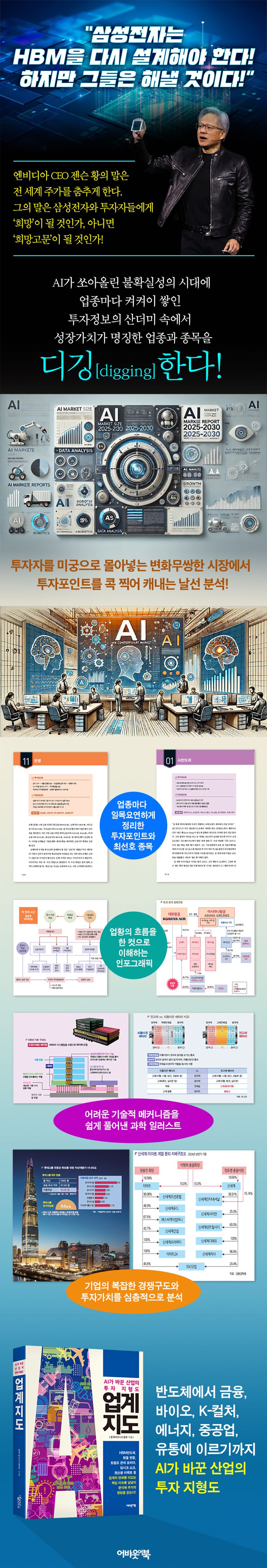 <업계지도:AI가바꾼산업의투자지형도>는국내증시에서투자가활발하게이뤄지는산업을선별하여해당업종의핵심이슈와투자포인트및유망종목들의밸류에이션을집중분석했다.이책에서다룬내용과종목은다음과같다.