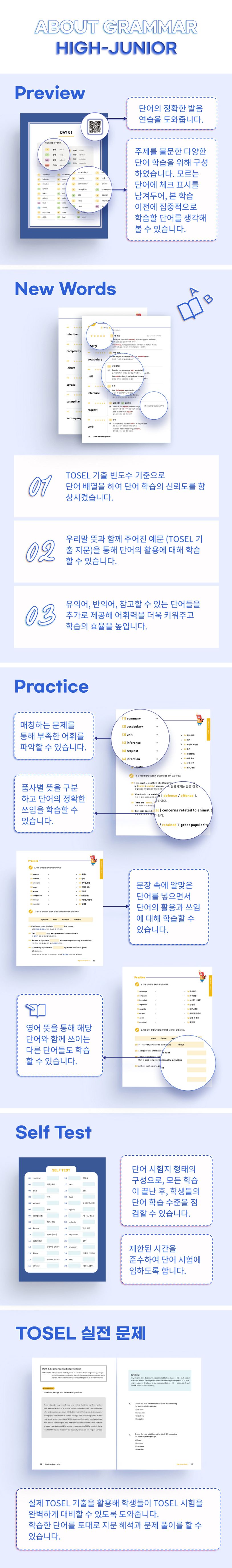 초등 교과과정 연계 단어 학습 및 세분화된 레벨링과 TOSEL 시험을 기준으로 빈출 지표를 활용한 단어 선정을 통해 TOSEL의 Vocabulary Series는 레벨에 맞게 단계적으로 어휘를 학습할 수 있습니다.