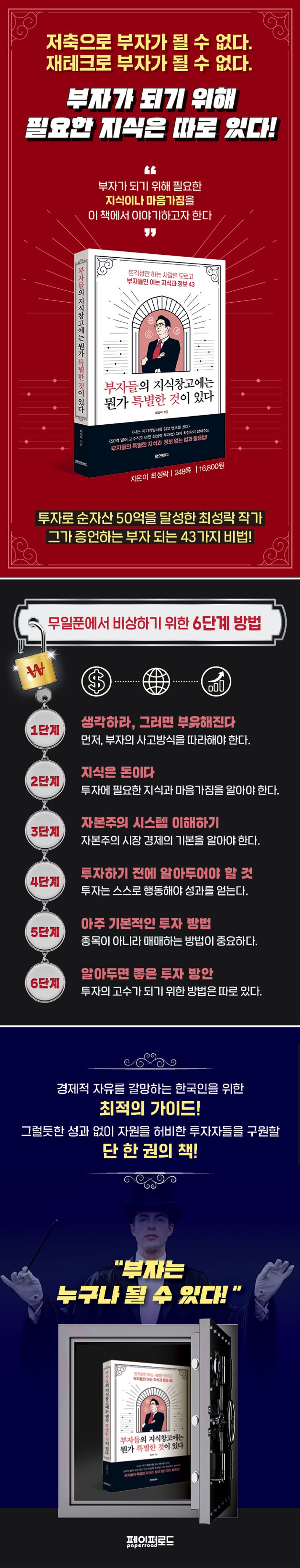 《나는 카지노에서 투자를 배웠다》(2019), 《50억 벌어 교수직도 던진 최성락 투자법》(2021)의 지은이 최성락은 이번 신간 《부자들의 지식 창고에는 뭔가 특별한 것이 있다》를 통해 부자가 되기 위한 특별한 지식과 정보를 알려준다. 이 책은 금융 지식이 전무한 투자 초보자든, 숱한 자원을 투입했으나 그럴듯한 성과를 얻지 못한 기존 투자자든 상관없이 최적의 가이드가 될 것이다.