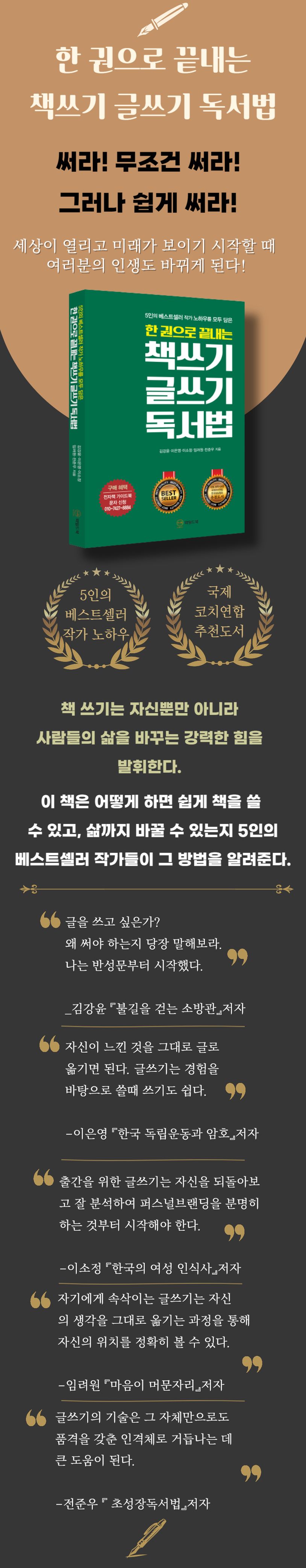 책쓰기 글쓰기 독서법 (5인의 베스트셀러 작가 노하우를 모두 담은)
