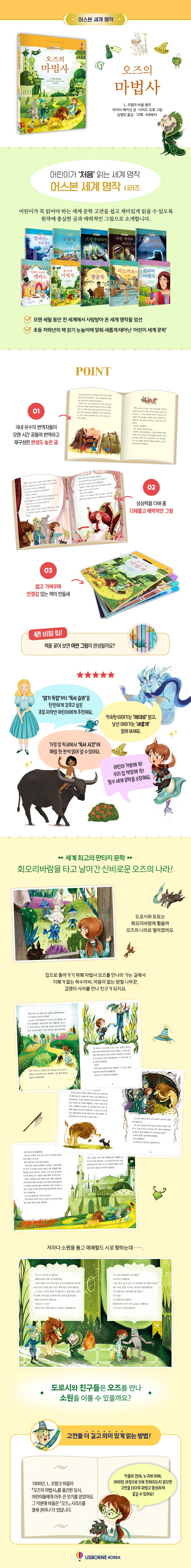 어린이들은 도로시와 친구들의 모험을 통해 마음속에 환상과 상상의 세계를 그려 보는 즐거운 경험을 하게 될 거예요. 더불어 이야기를 읽는 내내 마음에 머무르는 따뜻한 감동을 느낄 수 있지요. 위기 상황과 모험 속에서도 서로를 다독이며 함께 나아가는 오즈와 친구들에게서 사랑과 용기, 지혜를 읽어 낼 수 있었을 테니까요. 그 덕목이 마법이나 그 어떤 힘보다 강인하다는 사실이 마음 깊숙이 전해진답니다.