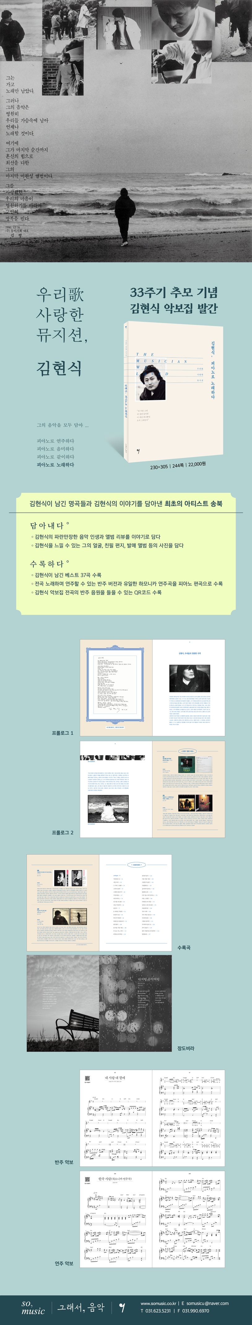 『우리歌(노래:가) 사랑한 뮤지션 - 김현식, 피아노로 노래하다』는 ‘우리歌(노래:가) 사랑한 뮤지션’의 두 번째 뮤지션 김현식의 삶과 노래를 이야기와 사진 그리고 피아노 악보로 담아낸 도서이다.