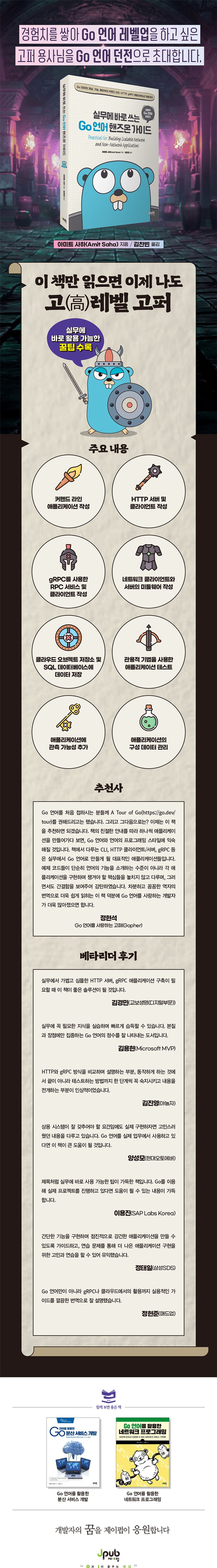 실무에 바로 쓰는 Go 언어 핸즈온 가이드 (Go 언어의 개념, 기능, 패턴부터 커맨드 라인, HTTP, gRPC 애플리케이션 개발까지)