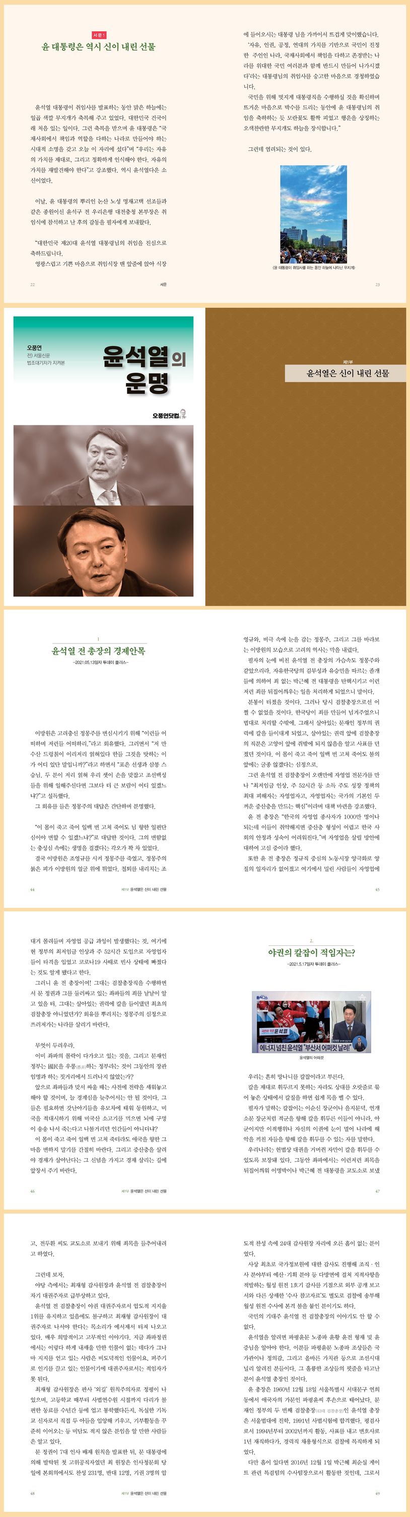 치열한 대선이 끝나고 윤석열이 대한민국 제20대 대통령으로 당선되었다. 압도적인 승률은 아니었더라도 공정한 선거를 통해 당선된 윤석열 대통령의 행보에 온 국민이 주목하고 있다. 여기, 윤석열 대통령이 당선되기 이전부터 열렬하게 그를 지지했던 김용복 주필이 있다.