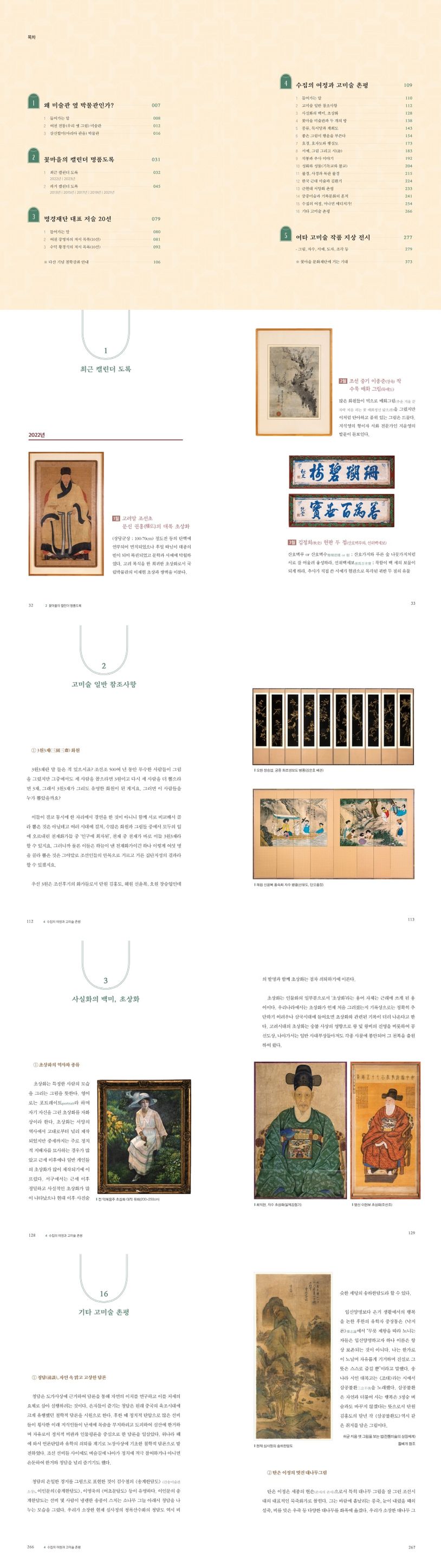 네 번째 챕터 ‘수집의 여정과 고미술 촌평’은 ‘고미술작품 수집’이라는 드문 취미에 열정과 노력을 다하면서 조금씩 정리해 온 저자가 고미술 애호가로서, 인문학을 오랫동안 연구한 철학자로서 고미술계에 관련된 다양한 주제를 화두로 삼아 던지는 촌평이다. 한국의 초상화가 가진 고유한 매력, 독서당과 계회도, 효자도와 행실도 등의 그림에 담긴 역사와 삶, 조선에서 가장 유명한 두 글씨의 천재 한호(한석봉)와 추사 김정희에 얽힌 흥미로운 이야기 등은 술술 읽혀내려갈 정도로 재미있으면서 동시에 독자들의 인문학적 식견을 넓혀주는 길잡이가 될 것이다.