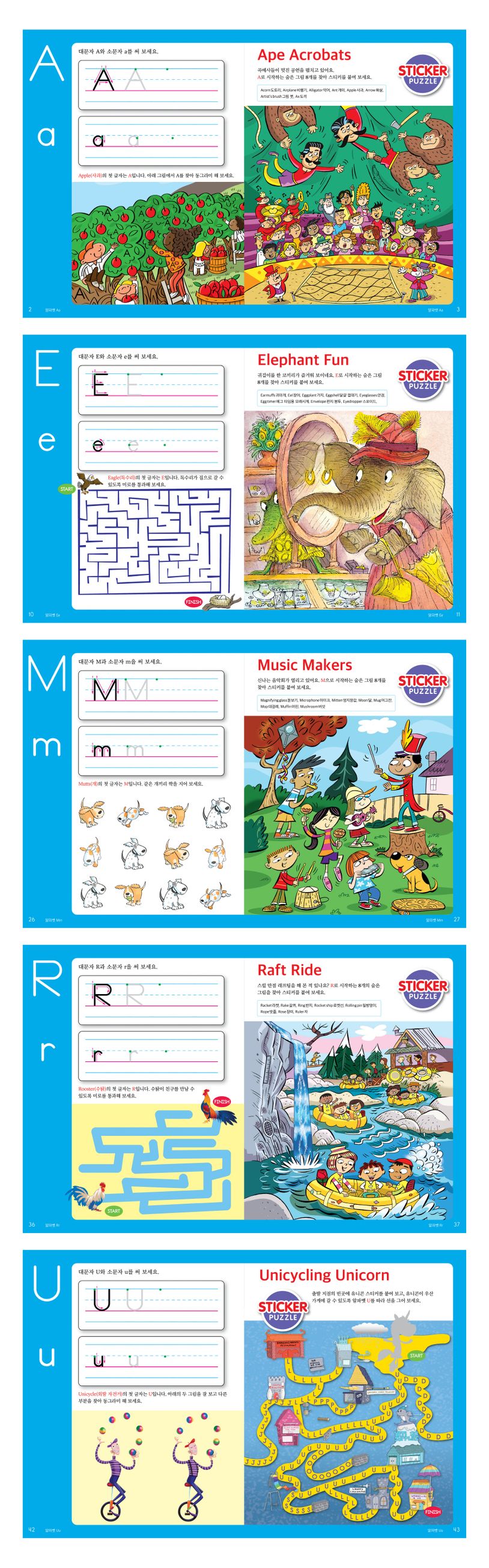 《AㆍBㆍC 숨은그림찾기 스티커 놀이북》은 숨은그림찾기, 다른 그림 찾기, 미로 찾기 등 다양한 퍼즐을 풀면서 재미있고 즐겁게 알파벳을 학습할 수 있는 책입니다. 알파벳뿐만 아니라 일상생활에서 자주 쓰이는 영어 단어를 쉽게 익힐 수 있음은 물론이고 학습에 필요한 집중력과 관찰력, 운필력 등을 기르는 데에도 큰 도움을 준답니다.