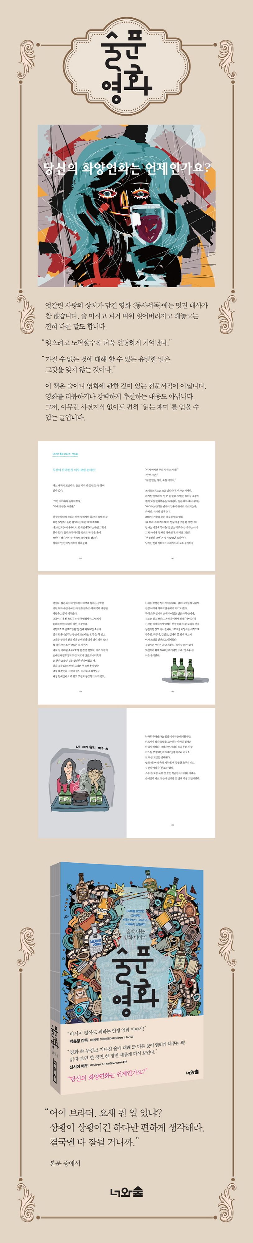 술도 예외는 아니다. 그래서 술에 관한 어떤 다양한 사실과 재미를 내 안에 쟁여놓고 싶은 욕구가 생긴다면 주저 말고 ?술푼 영화?를 펴면 된다.