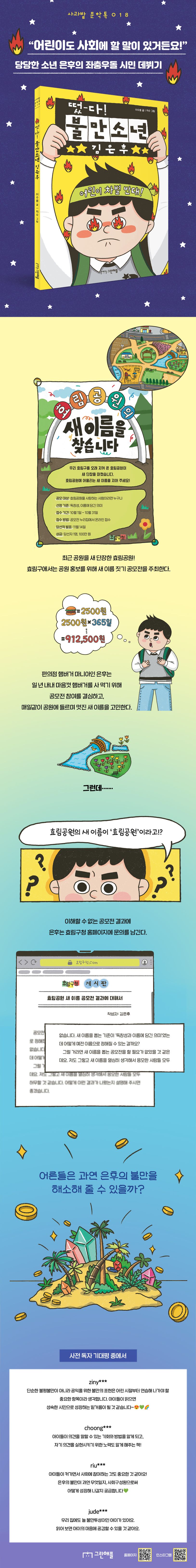 은후는 ‘독창성 있는 이름’을 뽑겠다는 선정 기준에 어긋난 선정 기관의 결과를 도무지 받아들일 수 없다. 그래서 태건이 형의 도움을 받아 구청 민원 게시판에 효림공원 새 이름 선정 결과에 대해 의문을 제기하는 글을 올린다. 하지만 구청의 답변은 더 큰 의문을 불러일으키는데……. 과연 은후는 새 이름 선정에 관한 꼬리에 꼬리를 무는 의문을 풀 수 있을까?